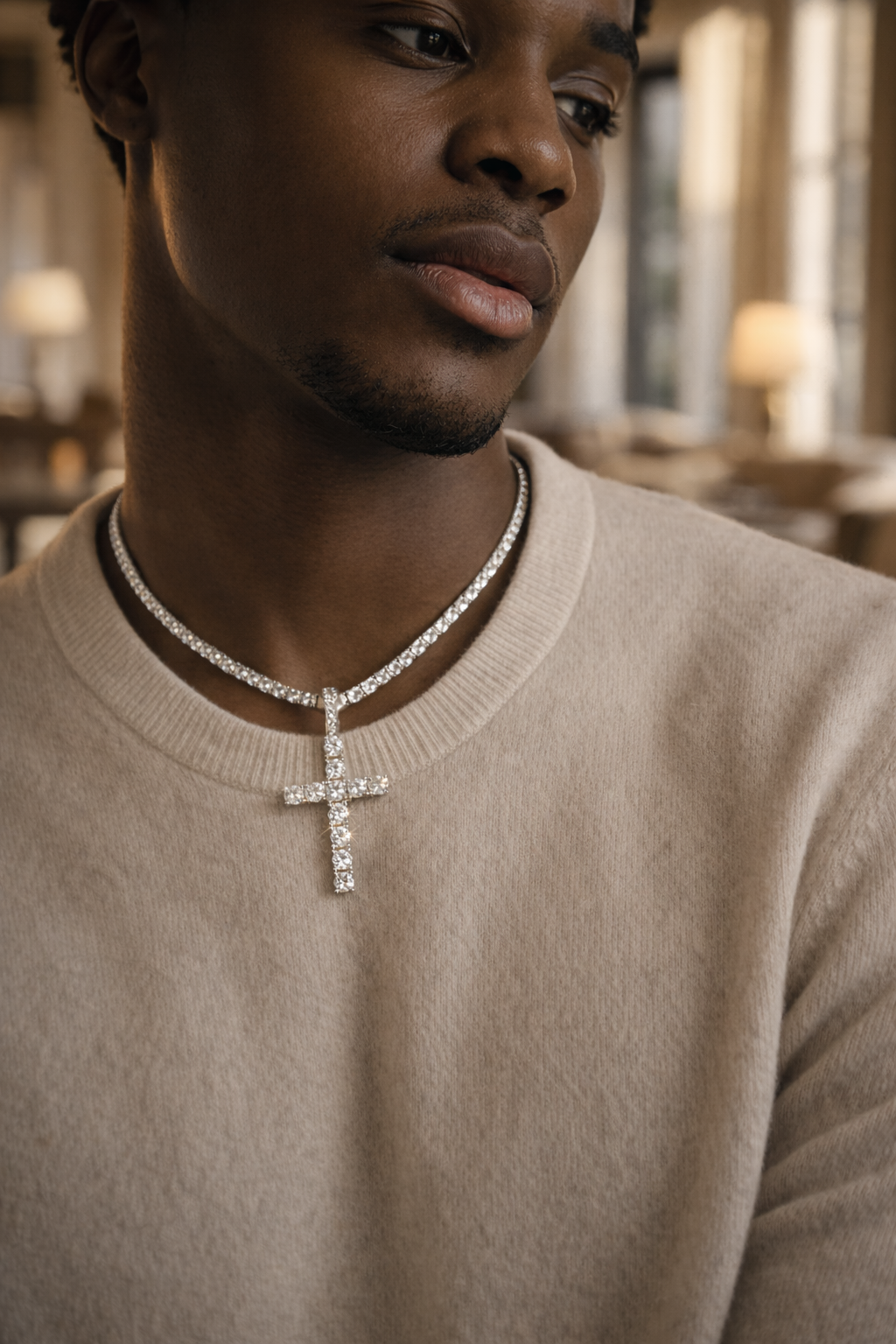 La collana è realizzata in ottone di alta qualità, con placcatura in oro bianco 18 carati.